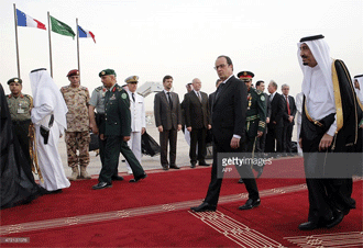 در یکماه گذشته فرانسوا اولاند رئیس جمهور فرانسه برای دریافت پاداش خود بخاطر همسو ساختن سیاست کشورش با موضع شیخ نشین های عرب خلیج فارس در خصوص جنگ کنونی در سوریه، به عربستان سعودی و قطر سفر نمود.
