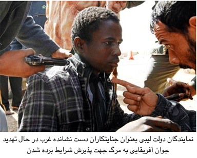 نگران کننده». خلاصه کلام، بدنبال توافقات اخیر بین مقامات اتحادیه اروپا و سران باندهای تروریستی حاکم بر لیبی، مهاجران دستگیرشده در آب های دریای مدیترانه به کشورهای آفریقای شمالی و بخصوص لیبی برگردانده می شوند. در لیبی این مهاجران و آوارگان در شرایط غیرانسانی و جنایتکارانه در اردوگاهها و زندان های تحت کنترل جریانات و باندهای تروریستی و فاشیست به بند کشانده شده و سپس در بازارهای برده فروشان در مقابل مشتی دینار بی ارزش لیبیایی به فروش گذارده می شوند.